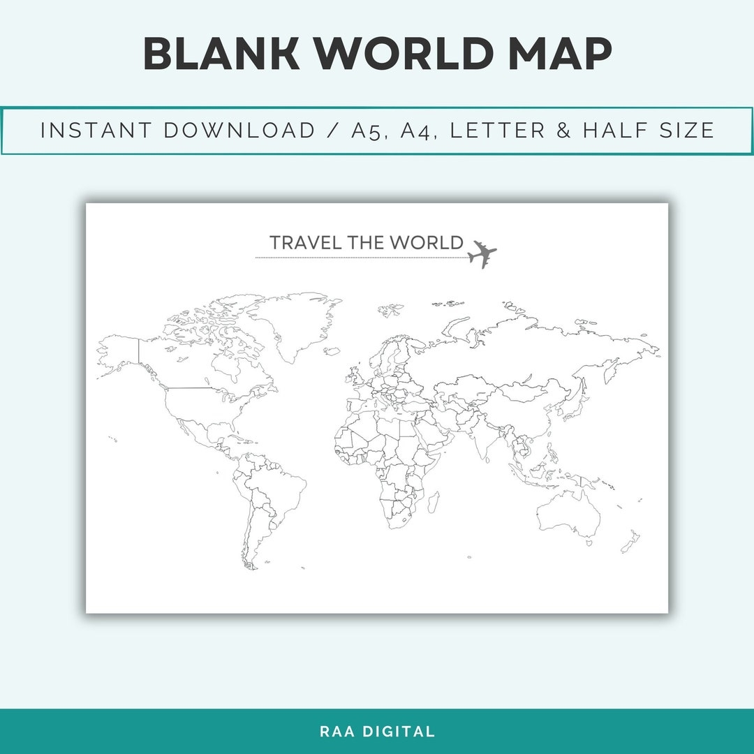 Blank Outline Map Of The World Where I ve Been Printable Blank World Map Travel Map Bucket List Map Landscape 4 Sizes Digital File Etsy