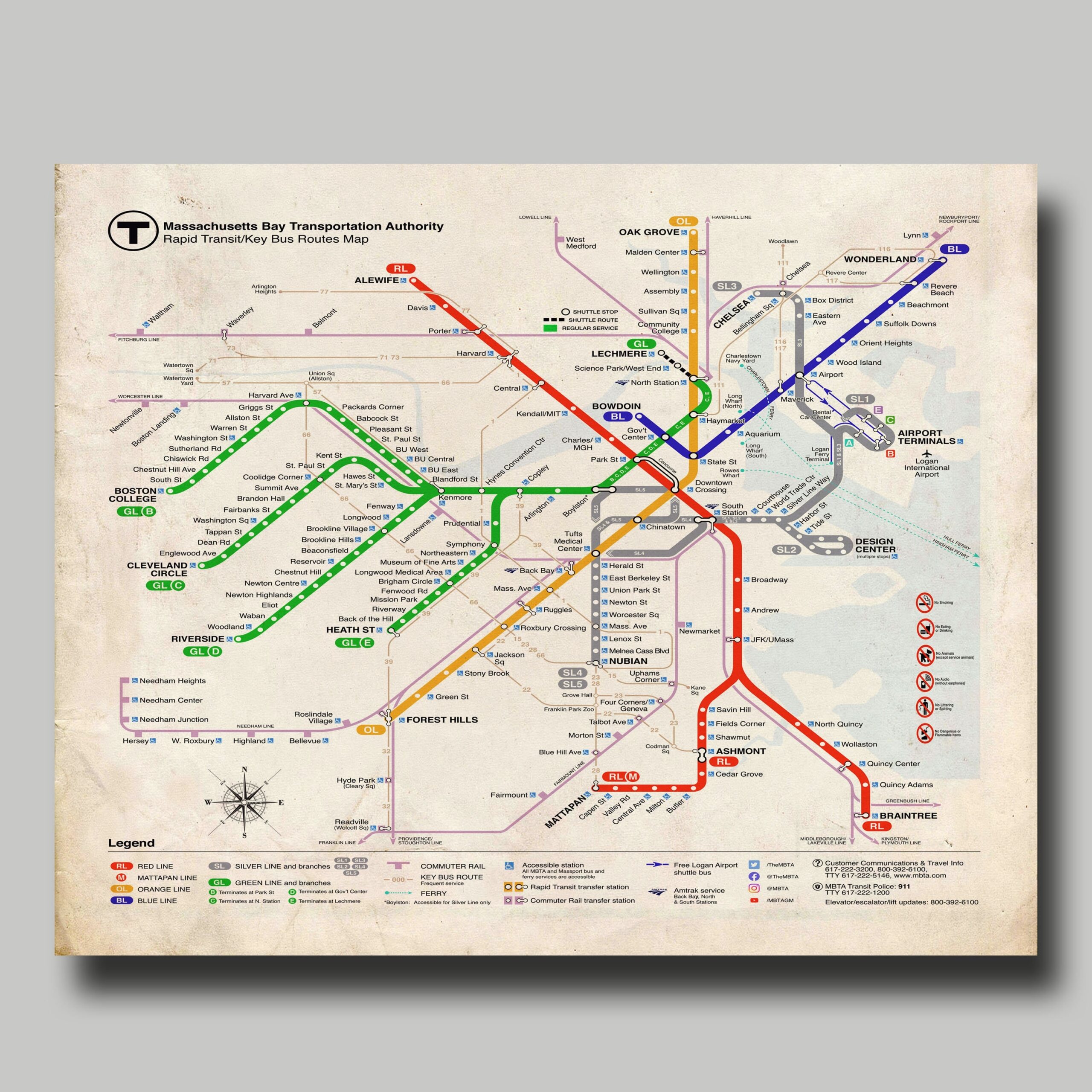 Boston T Train Map Boston Subway Map Boston Metro Map Boston Transit Wall Art Transportation Poster Traveler Gift Boston Gifts MBTA Etsy