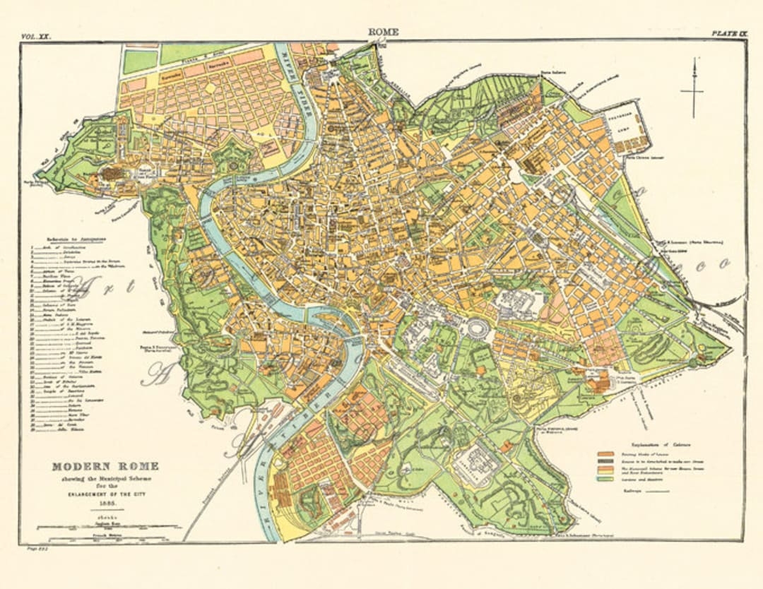 Printable Map Of Rome Around 1885 Unique Gift And Home Decor Digital Download No 684 Etsy