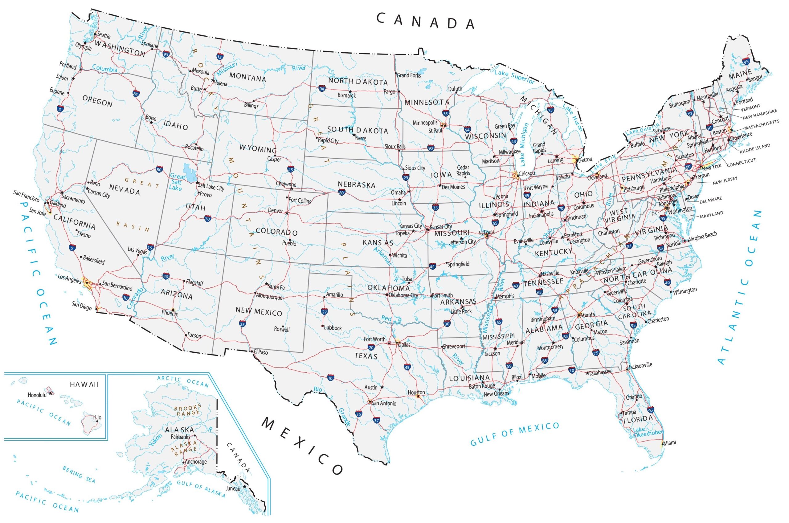 Detailed USA Map With Cities And States Labels US Map Print With Worksheets Library