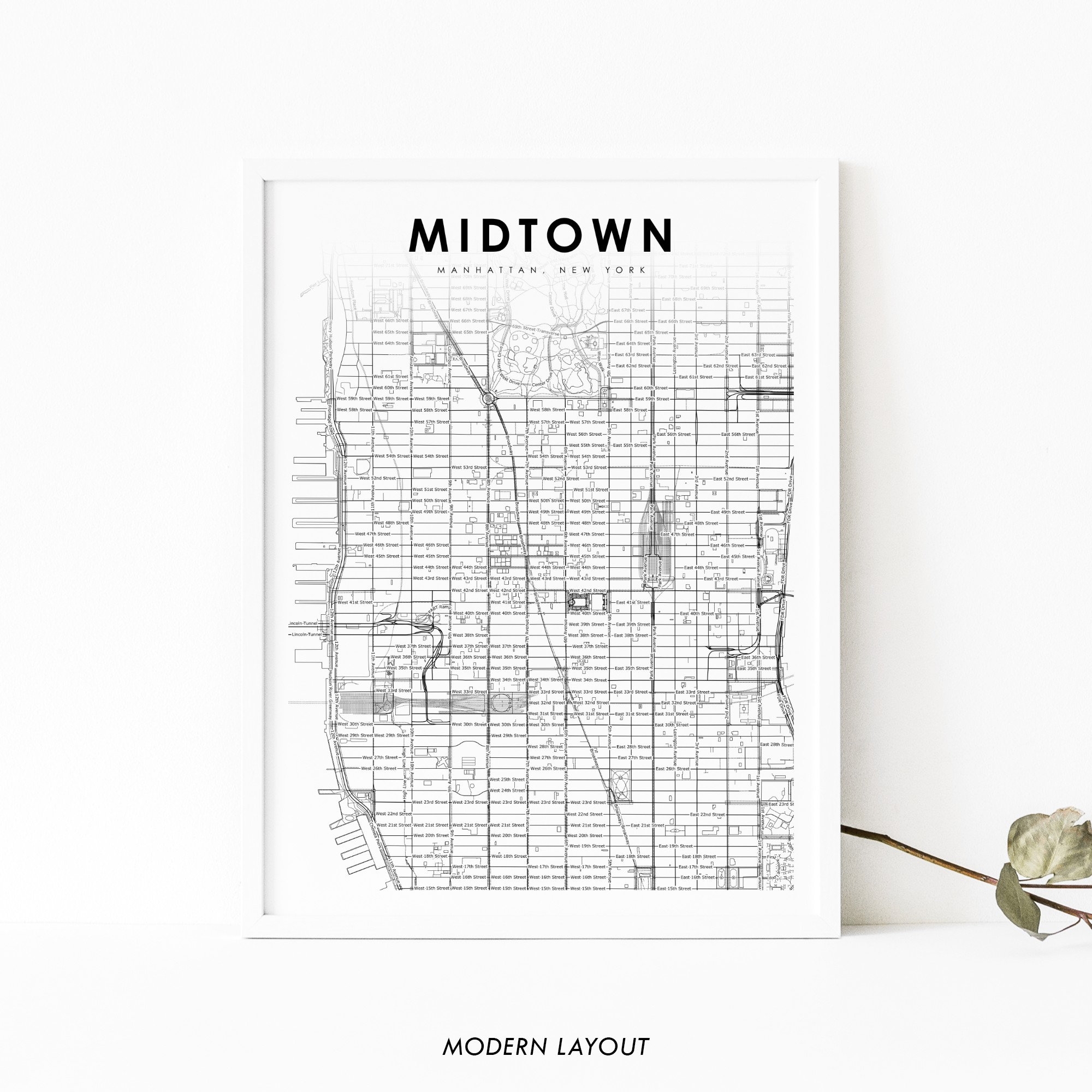 Midtown Manhattan NYC Map Print New York USA Map Art Poster City Street Road Map Print Nursery Room Wall Office Decor Printable Map Etsy