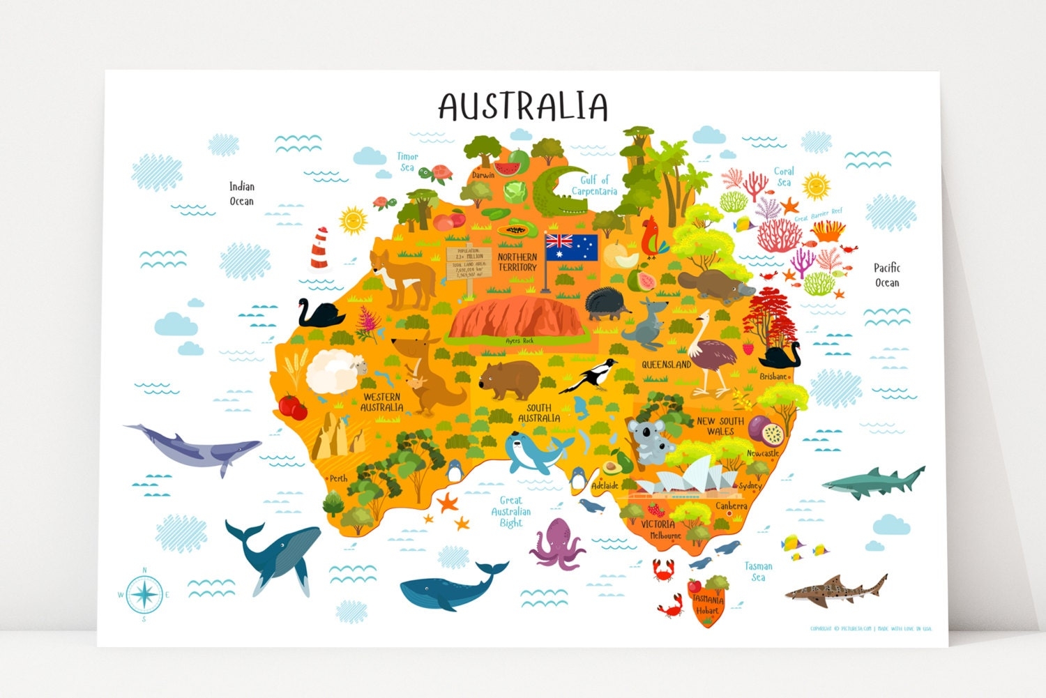 Australia Map Printable Wall Art Digital Download up To 36