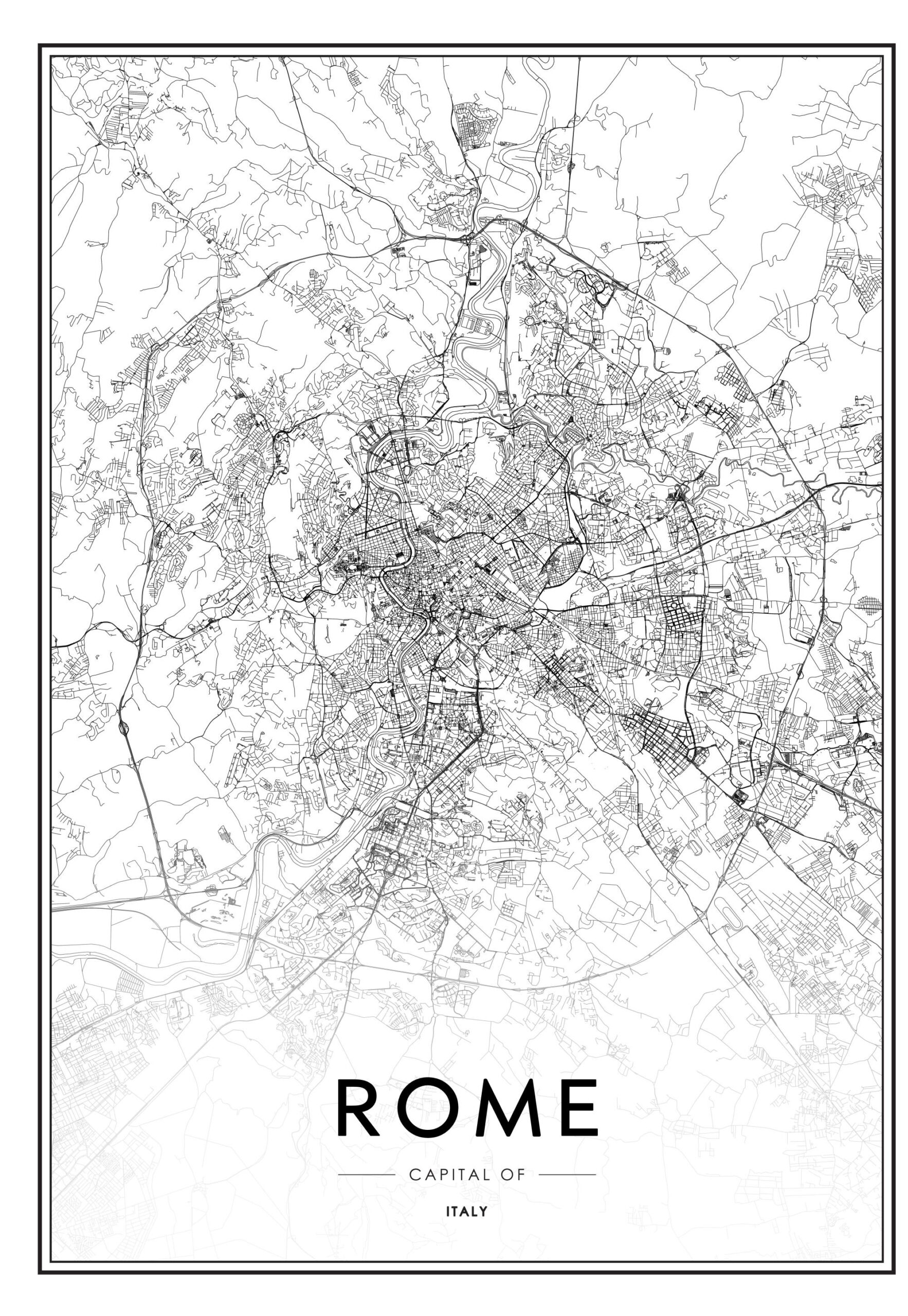 Black And White Printable Rome City Map Poster Design Vector Illistration Stock Vector Image U0026 Art Alamy