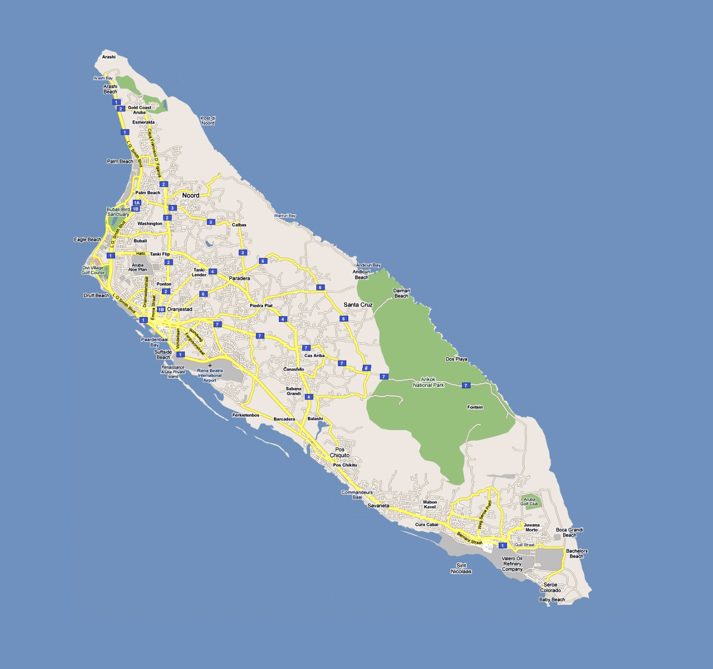 Large Road Map Of Aruba Aruba North America Mapsland Maps Of The World