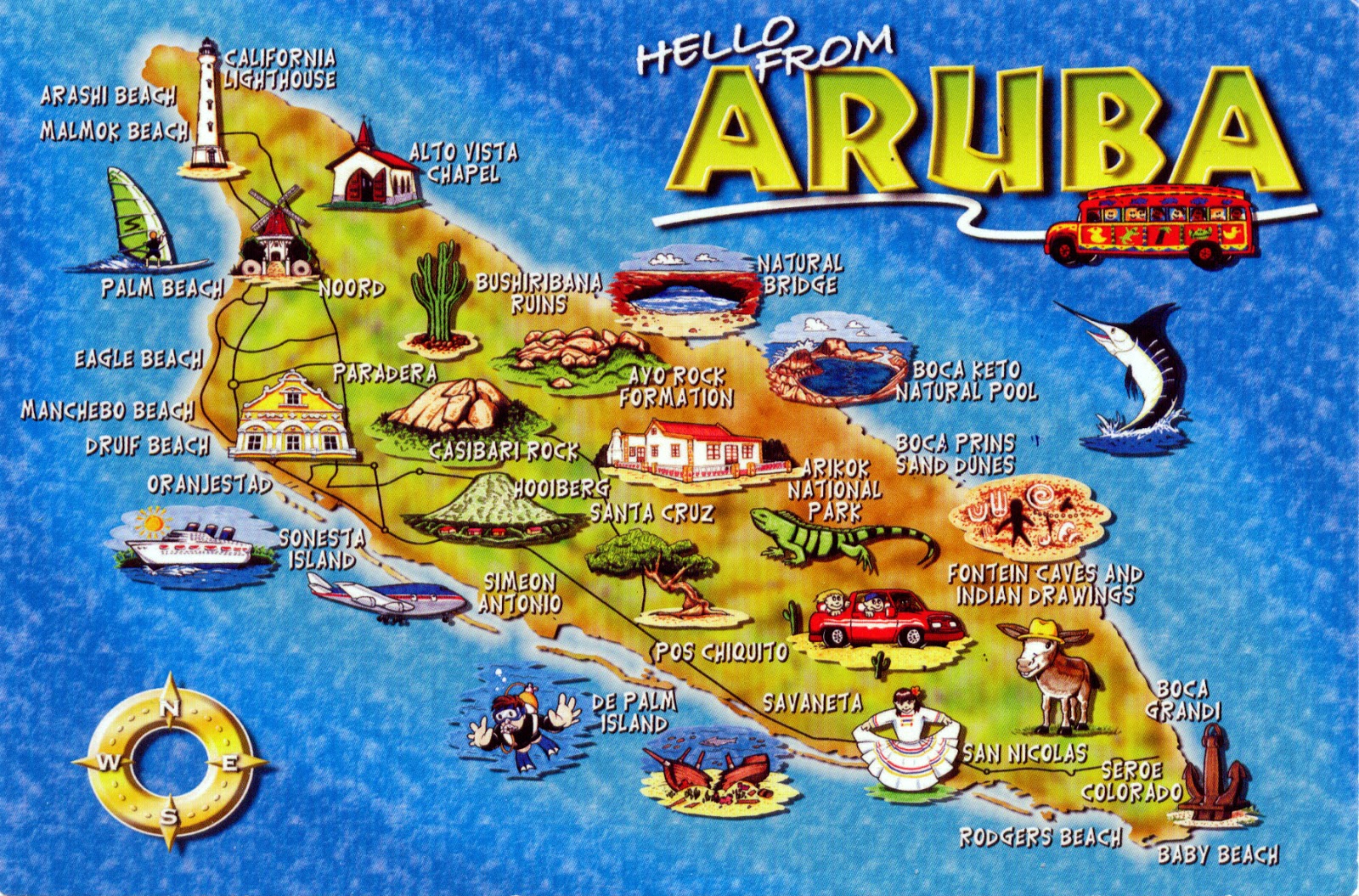Large Tourist Illustrated Map Of Aruba Aruba North America Mapsland Maps Of The World