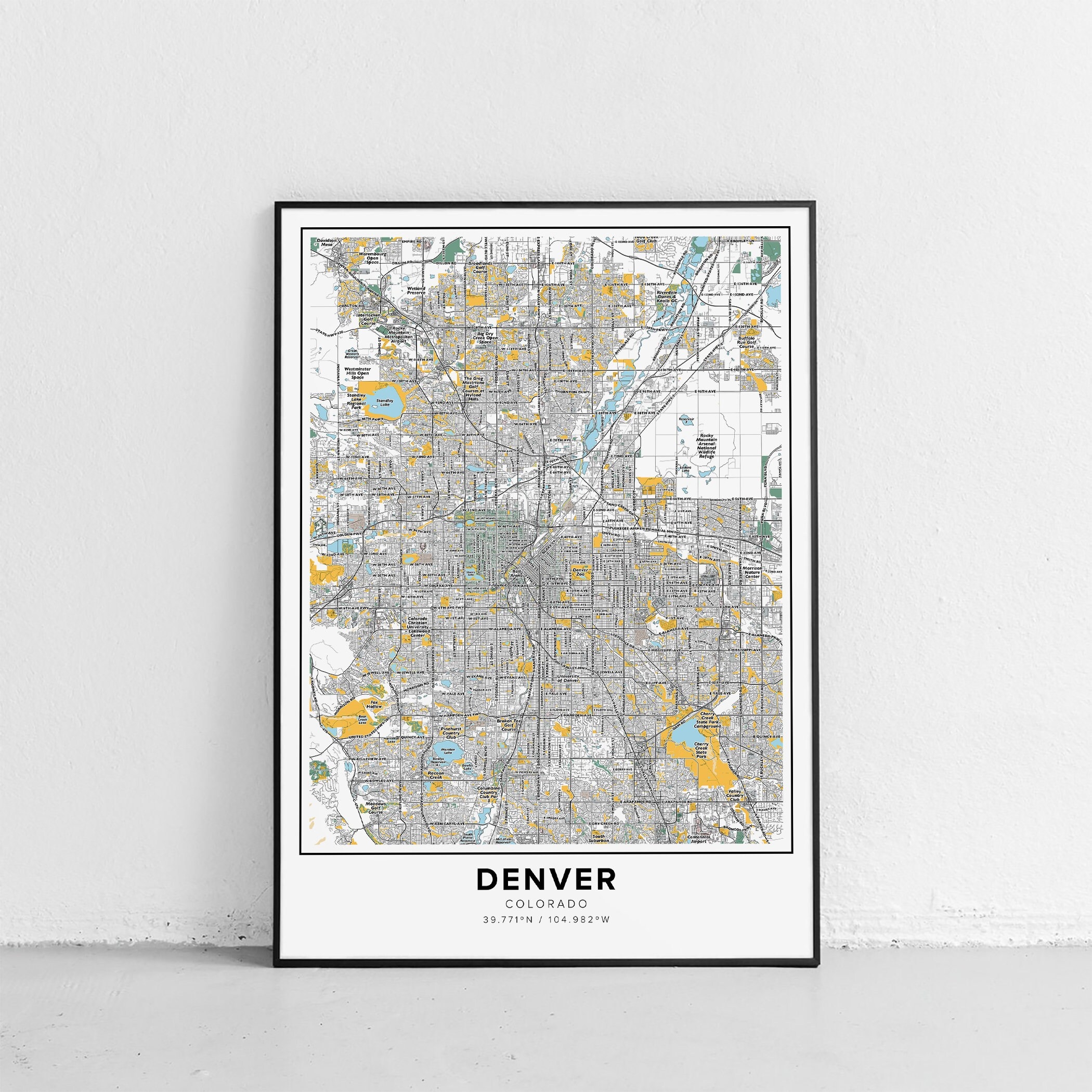 Denver Map Print Street Names Denver Print Printable Map Of Denver City Map Art Denver Colorado Map Art Travel Gift Poster Etsy Australia