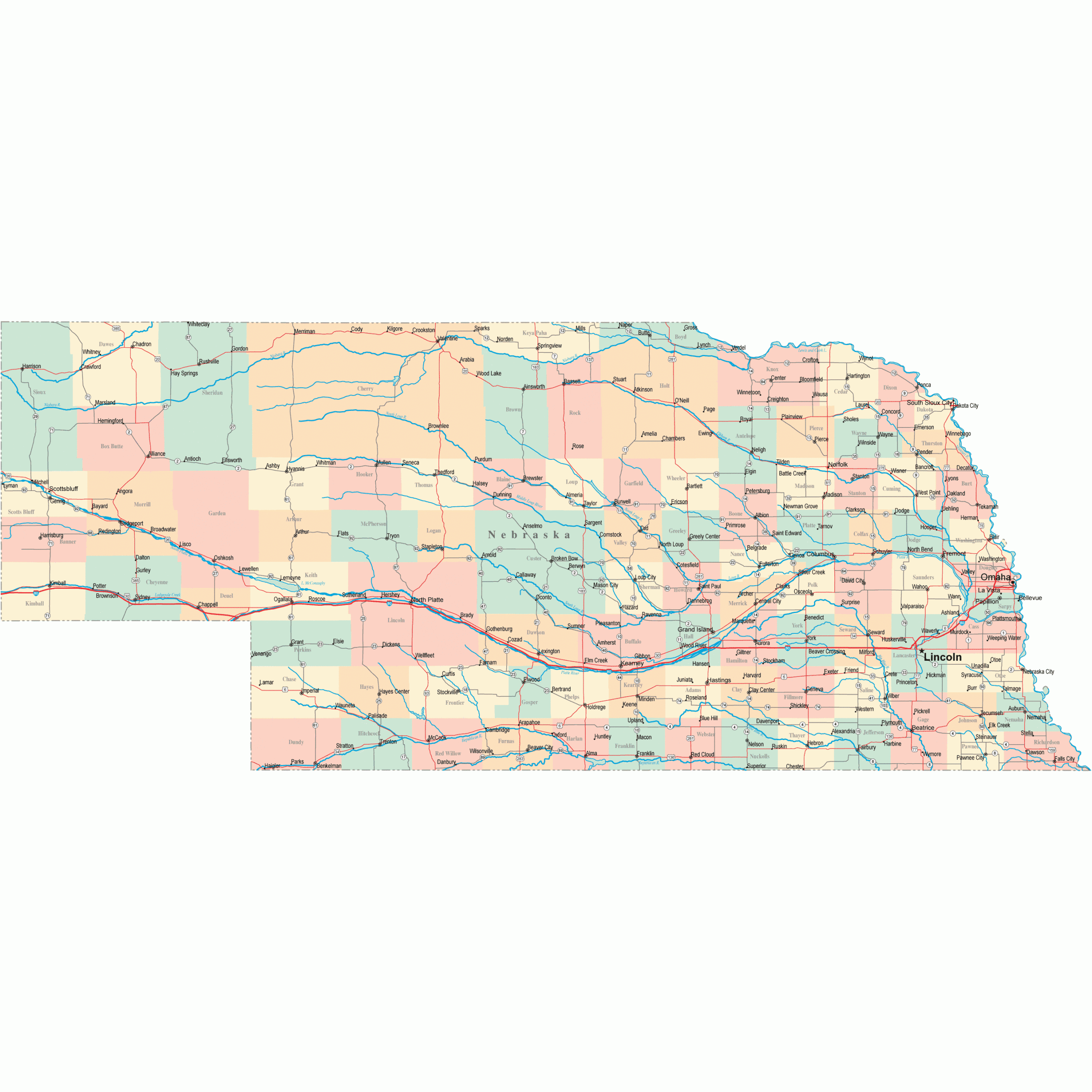 Nebraska Printable Map