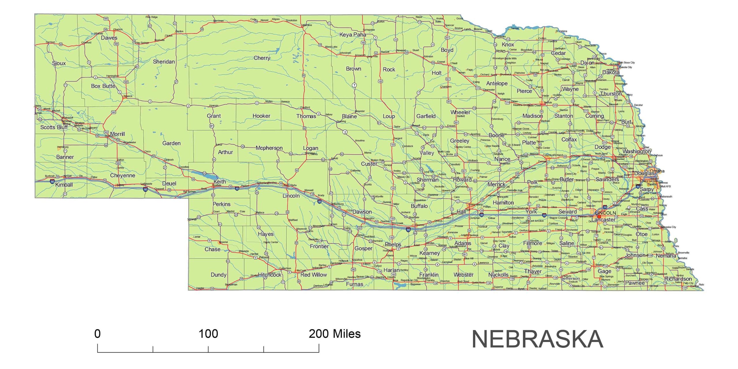 Nebraska Free Map