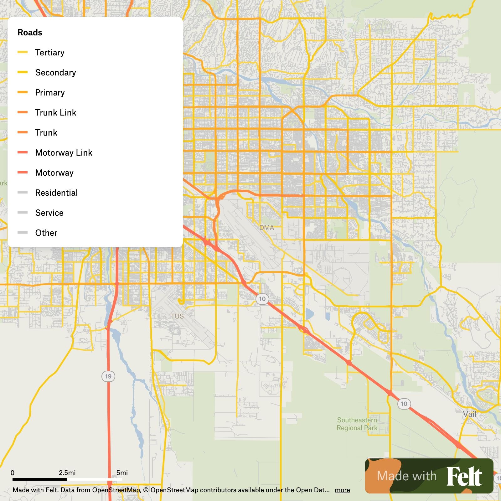 Printable Map Of Tucson Arizona USA With Street Names Instant Download City Map Travel Gift City Poster Road Map Print Map Art Etsy