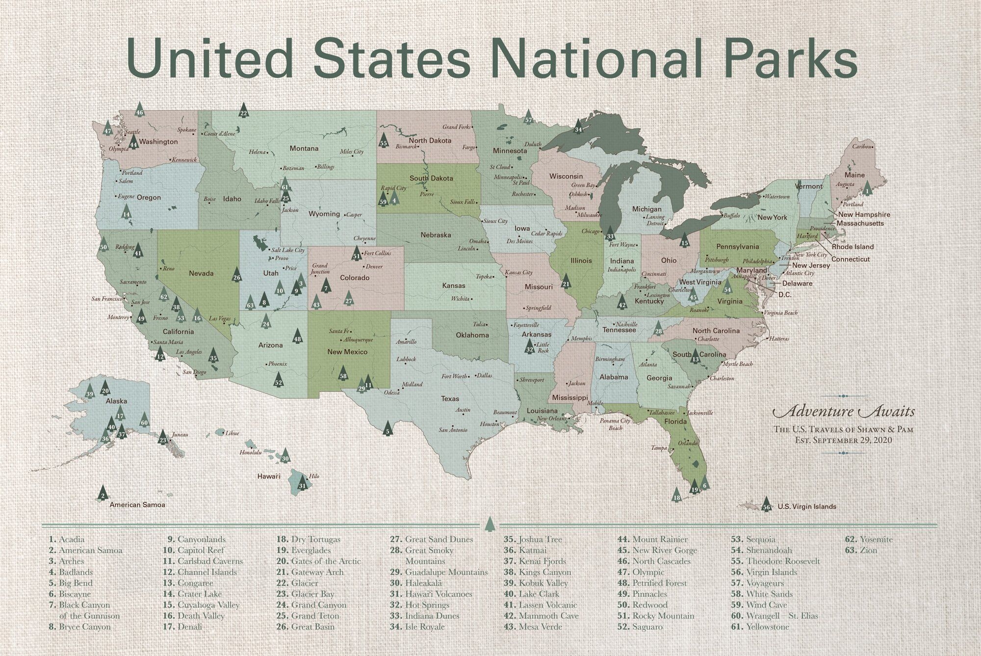 COMPLETE National Parks List 2024 Printable MAP
