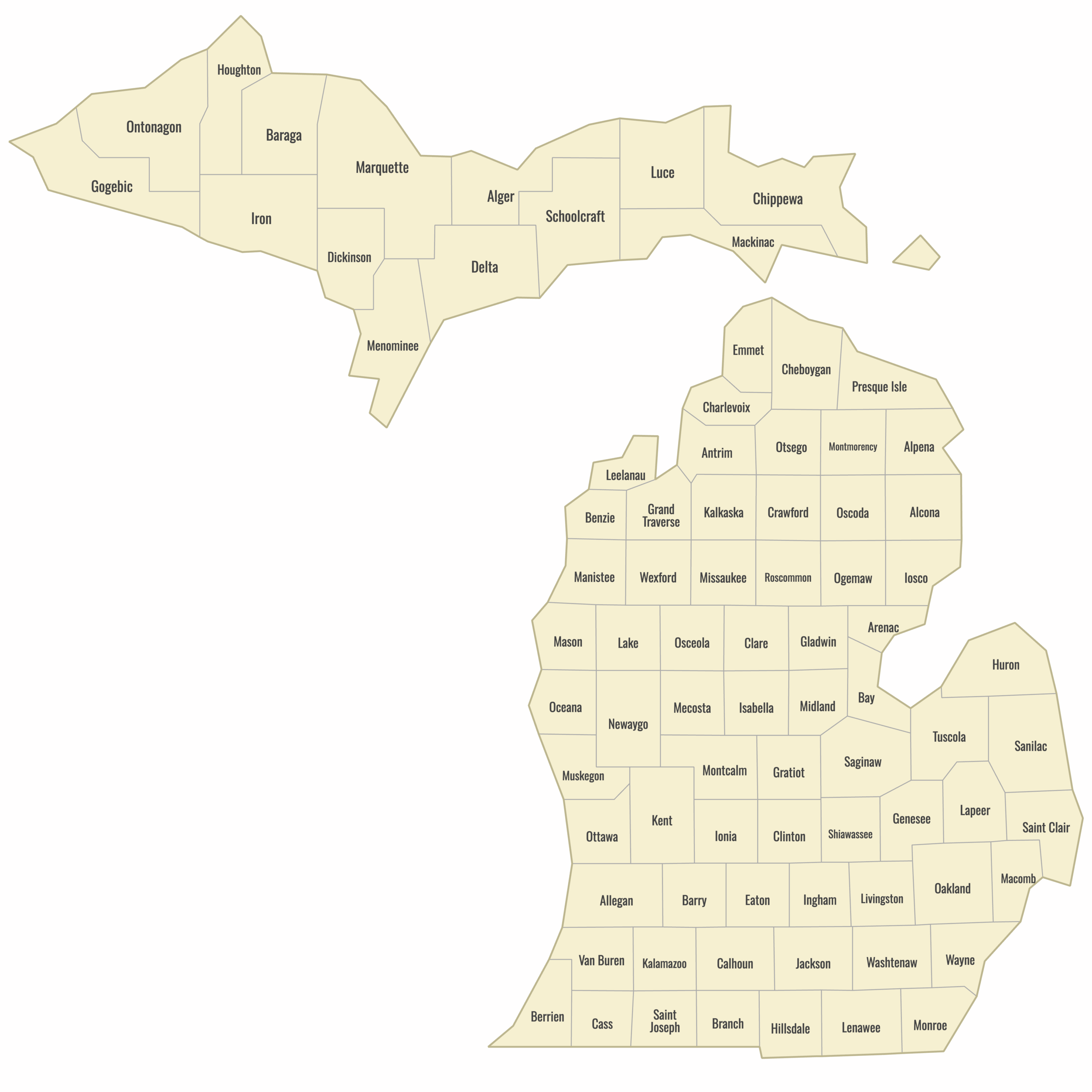 Printable Michigan County Map