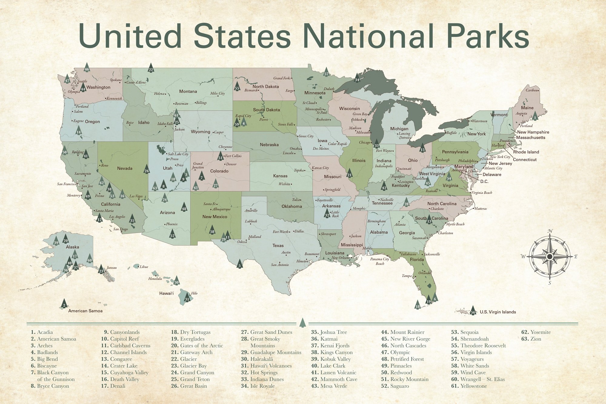 COMPLETE National Parks List 2024 Printable MAP