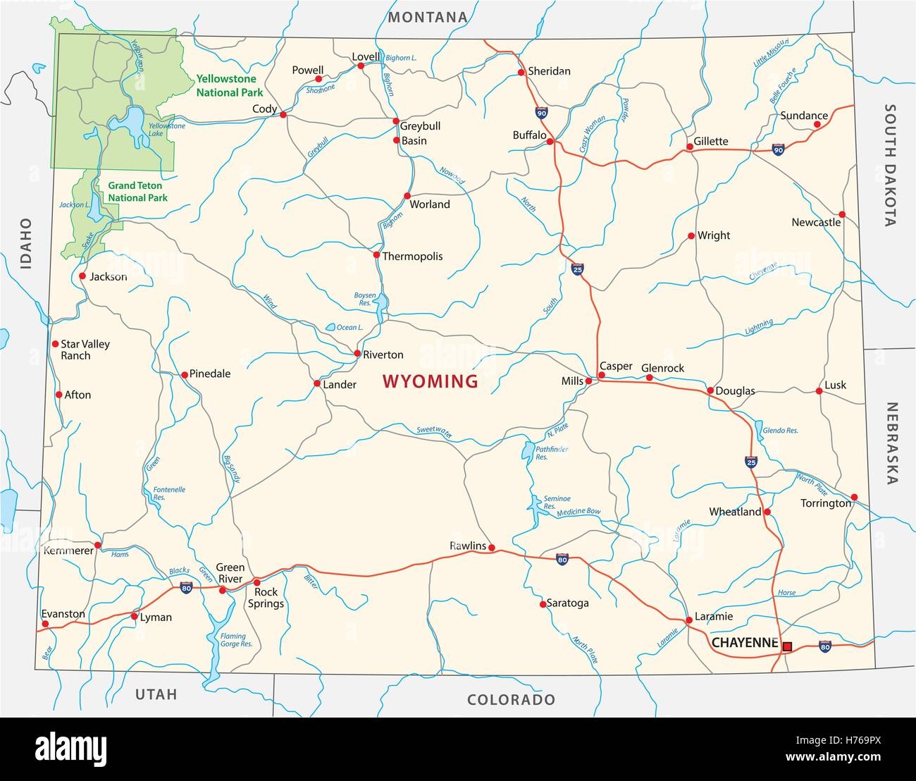 Wyoming Road Map Stock Vector Image U0026 Art Alamy