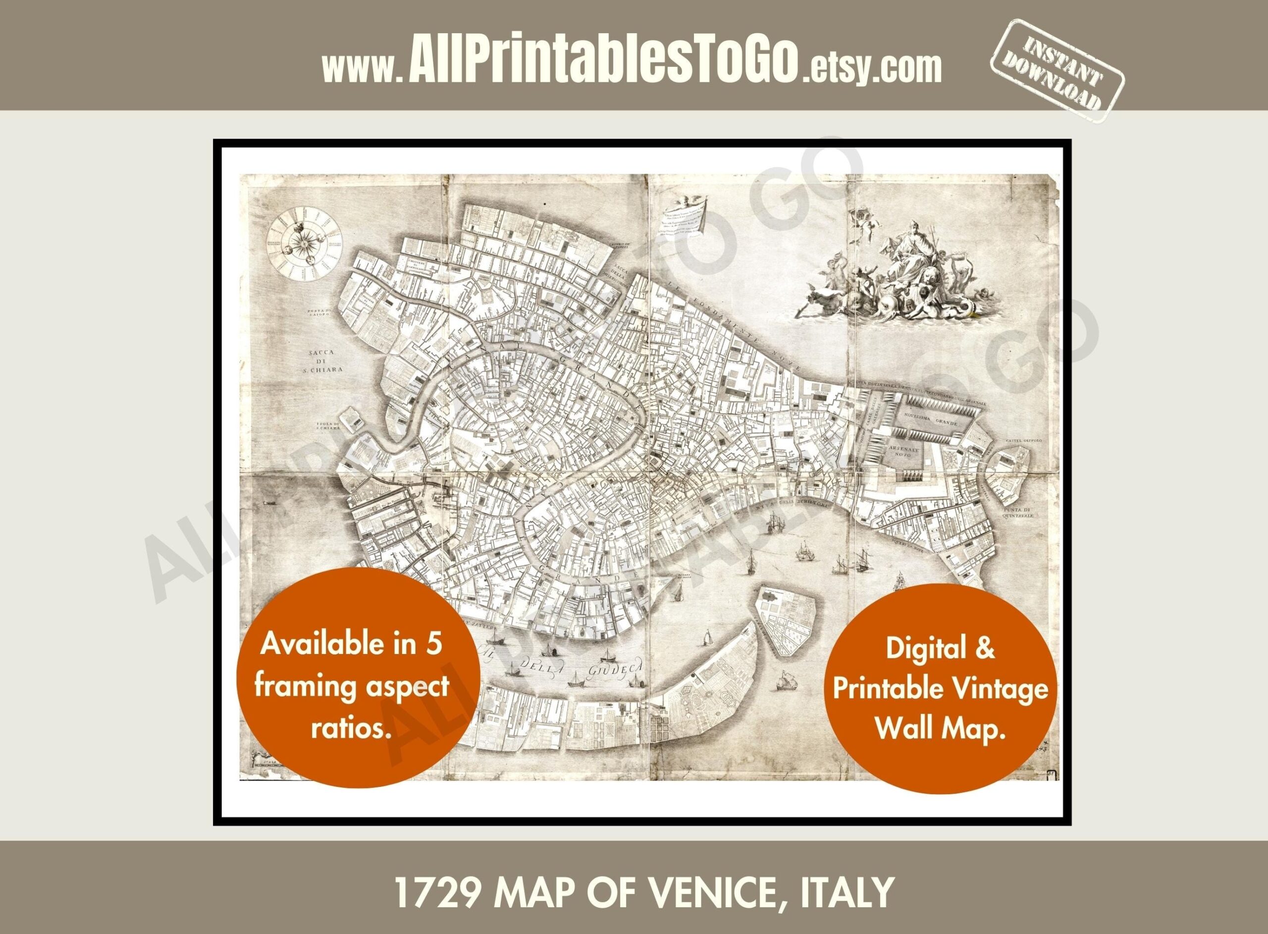 Printable 1729 Map Of Venice Italy From 1729 Vintage Venice