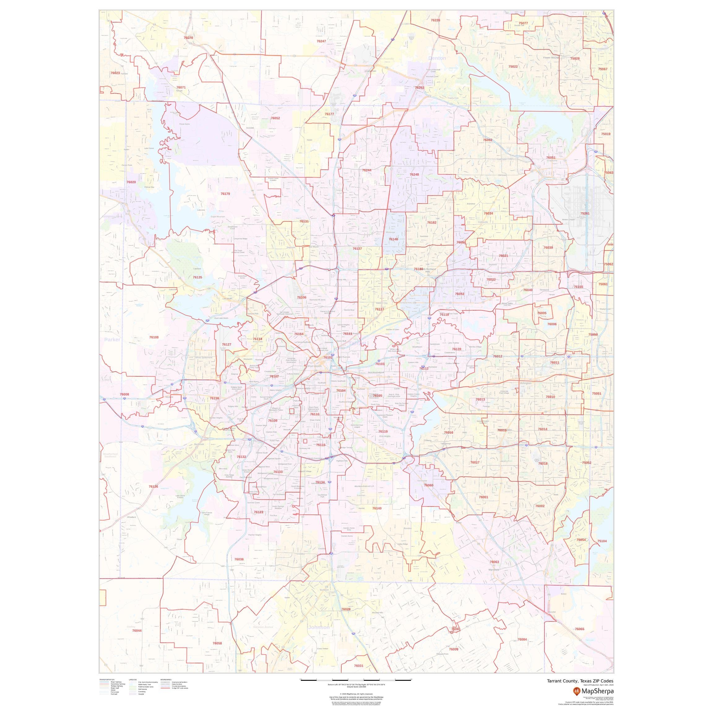 Texas ZIP Code Map With Counties Digital
