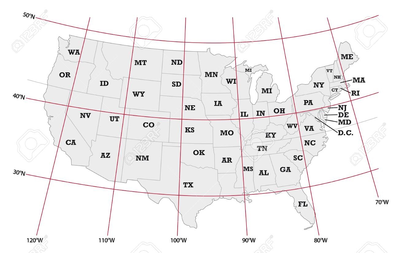 Administrative Map United States With Latitude And Longitude